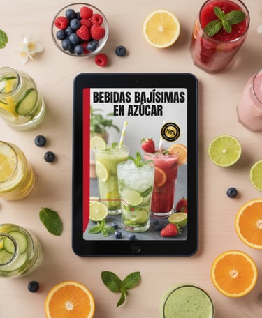 Recetas de bebidas bajísimas en azúcar, con combinaciones naturales, preparación sencilla y orientaciones claras que te ayudarán a hidratarte de forma saludable, controlar el consumo de azúcar y mantener hábitos equilibrados cada día
